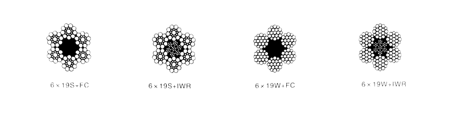 | 6x19s+FC | 6x19S+IWR | 6x19w+FC | 6x19W+IWR | |||||||||||