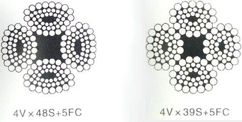 四扇形不旋轉鋼絲繩(光面和鍍鋅)4Vx39S+5FC 4Vx38S+5FC